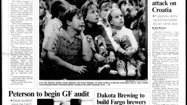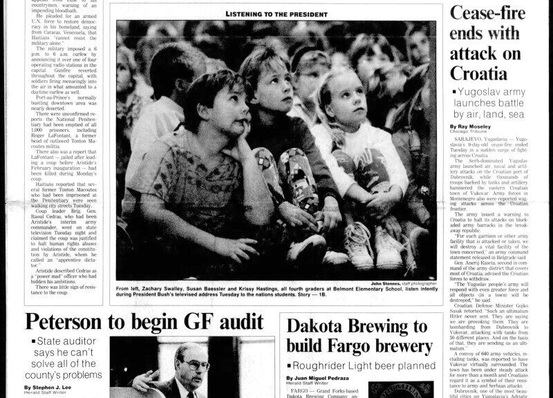 On October 2, 1991, students at Belmont Elementary School in Grand Forks listened intently as President George H.W. Bush addressed them during a live...