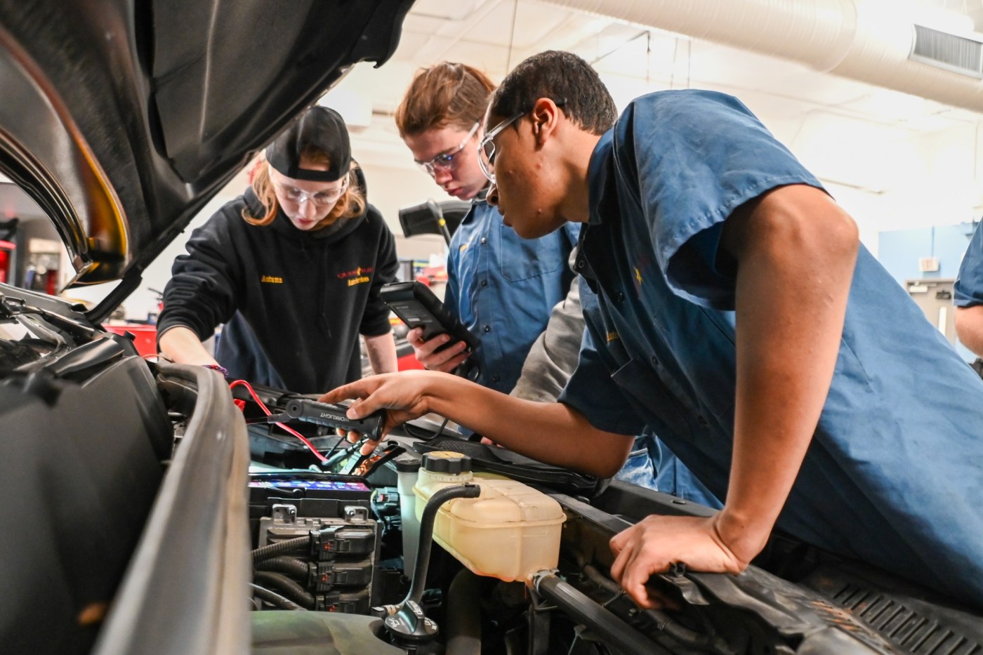 Autumn Williams, Shaun Smith, and Daniell Rodriguez are among the students actively participating in this practical learning experience. They recently performed a battery test as part of a comprehensive multi-point inspection, which includes checking various vehicle systems and components. This training is designed to equip students with the knowledge needed to identify potential issues before they become significant problems.