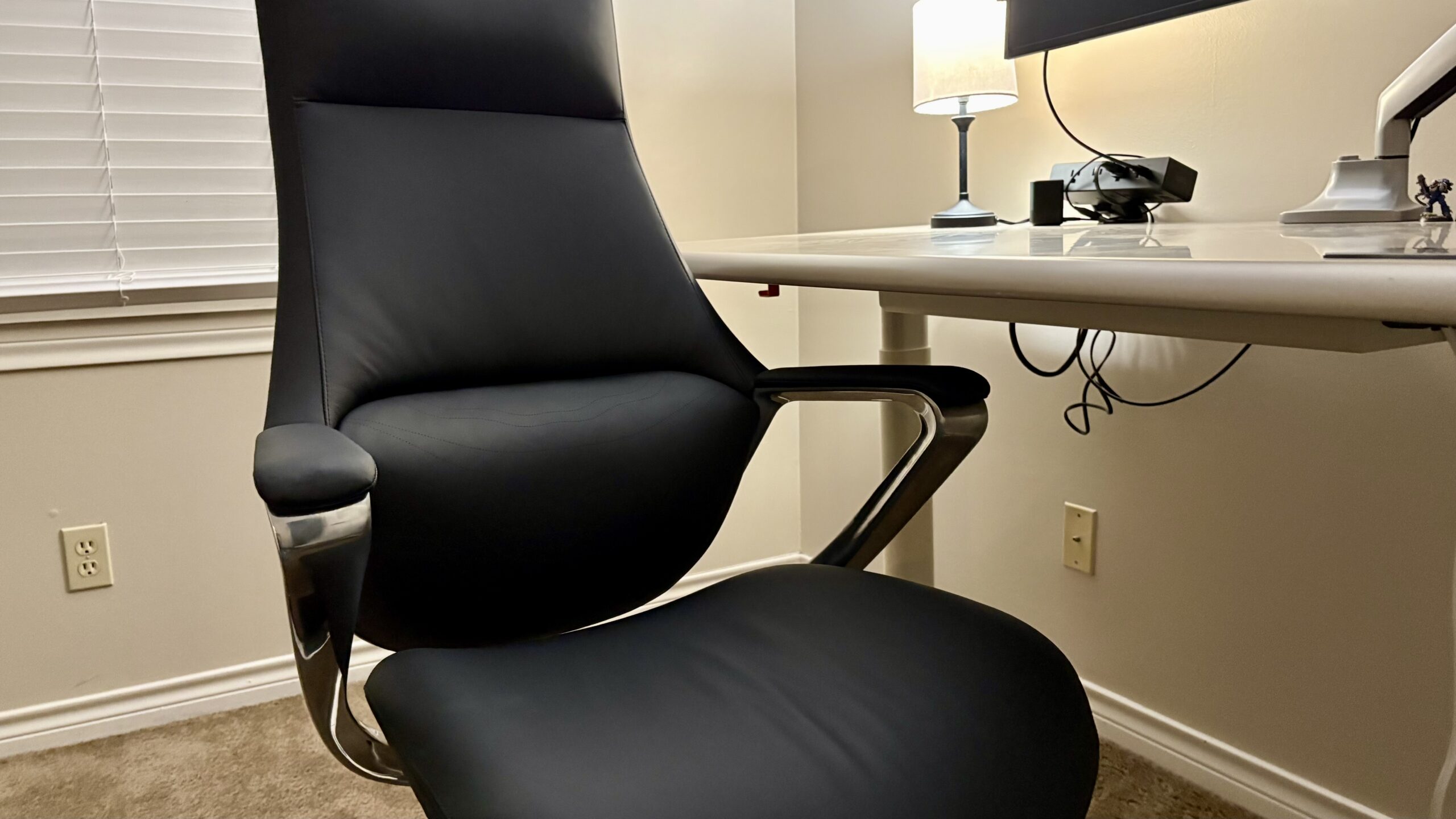 The chair’s packaging is commendable, ensuring safe delivery with quality materials. Assembly is straightforward, typically taking around 20 minutes. The overall design showcases strong lines and artistic angular armrests, though the latter prioritize style over functionality. The lumbar support is subtle yet effective, providing comfort without compromising the chair’s sleek silhouette.
