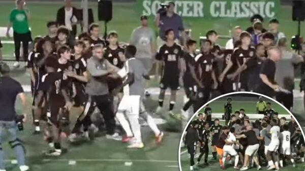 UPDATE: A shocking postgame brawl erupted Saturday night at a high school soccer match in Jersey City, where a photojournalist claims that star forward...